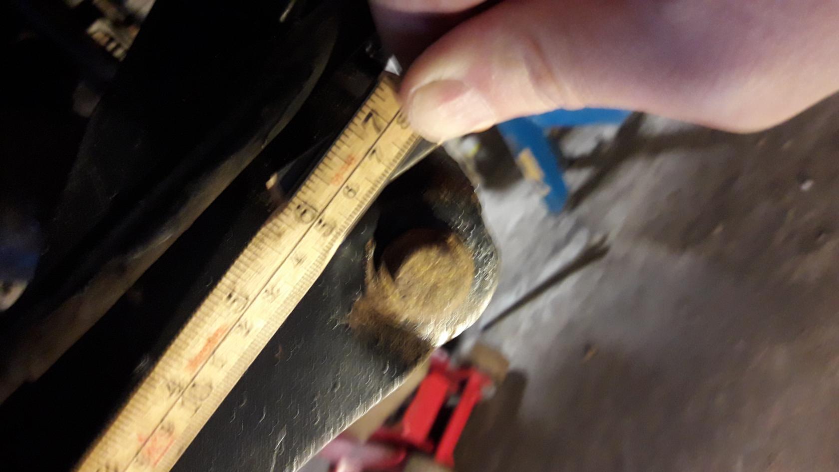 I took the essential measurments from my old axle and measured on the donor car before removing the axle, everything looked identical. Back home I de-rusted and paited it and pressed in new bushes. The axle went on the car and fitted perfectly except... The ride hight! When unloaded, the wheels sits like the car was fully loaded. It seemed like the shocks were too short. So I went and got the measuring tape again and found that the lower shock mounting sits aprox. 15-20 mm lower on the "new" axle, compared to the old one. So I thought to my self: "Aha! I just need to get later type shocks, they are probably longer!"